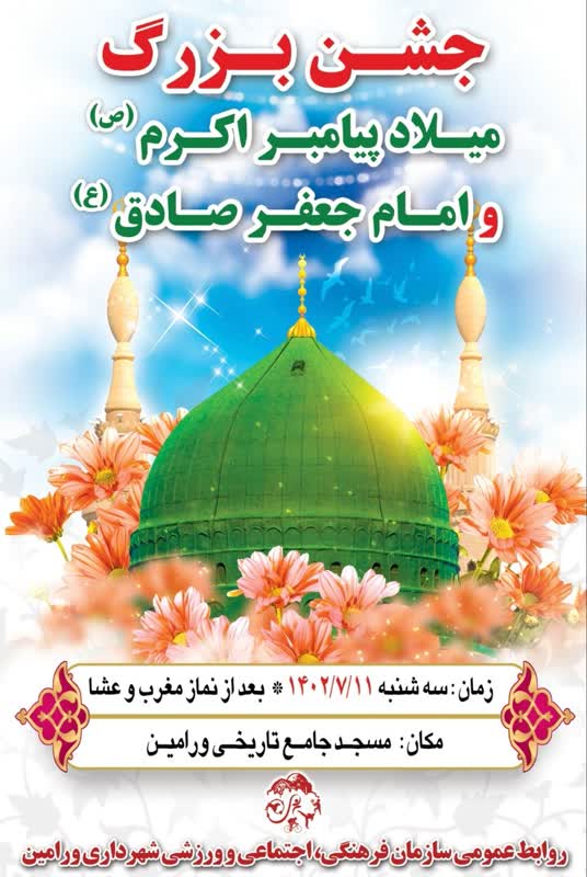 به همت سازمان فرهنگی اجتماعی و ورزشی شهرداری ورامین جشن بزرگ میلاد پیامبر اکرم(ص) امشب(سه شنبه شب) در مسجد جامع برگزار می شود.