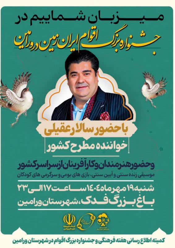 مراسم افتتاح اولین جشنواره ملی اقوام وقومیت های ایرانی شهرستان ورامین با حضور سالار عقیلی خواننده مطرح کشور عزیزمان ایران اسلامی