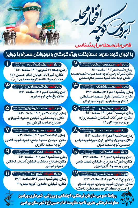 کاری از سازمان فرهنگی اجتماعی و ورزشی شهرداری ورامین و معاونت فرهنگی سپاه ناحیه مقاومت امام حسین(ع) ورامین
