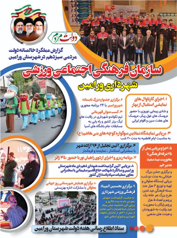 گزارش عملکرد یکساله دولت مردمی سیزدهم در شهرستان ورامین شناسه خبر: 976 تاریخ و زمان ارسال: 2 شهریور 1402 ساعت 7:30 بازدید : 84 نویسنده: farhangi